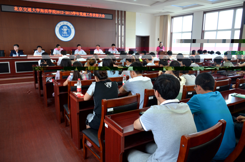 7月13日下午4:00,我院在行政樓五樓會議室召開2012-2013學年黨建工作表彰大會。北京交通大學黨委副書記、我院院長高福廷,我院執行院長王大勇,副書記兼副院長張長铎,副院長吳子成、徐維祥以及各相關單位負責人、各黨支部書記出席會議。我院全體教職工黨員及學生黨員參加會議。表彰大會由學生處處長孫文博主持。
